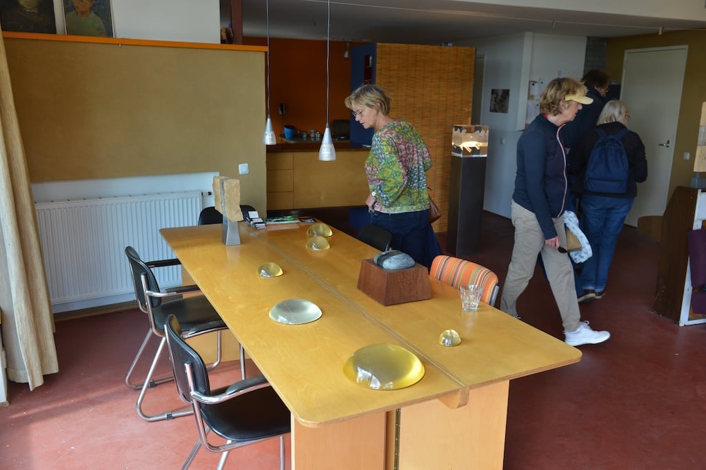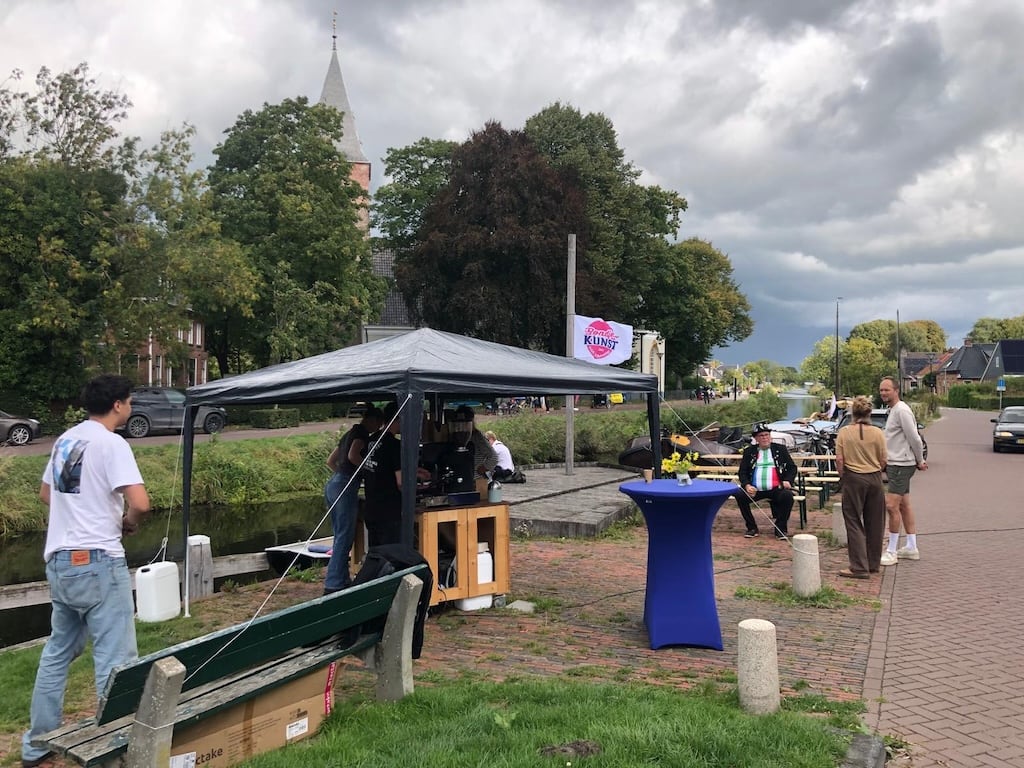 De commissie start al in oktober van het jaar vóór Rondje Kunst met de voorbereidingen. “Vooral in de periode vanaf de zomervakantie (juli) tot aan de geplande dag in september is het echt druk.” zegt Judith. “Dan hebben we vooral veel één-op-één contact, stemmen we af via onze groepsapp en werken we bijna dagelijks aan de voorbereiding.” Gelukkig kunnen ze leunen op een draaiboek met een helder tijdspad. “De mensen uit de commissie die in het begin contact hadden met de bewoners aan de Oost- en Westzijde, gaan nu opnieuw langs om te checken of alles klaar is, én of de Rondje Kunst-poster op het raam hangt. We hebben veel vaste vrijwilligers uit het dorp die helpen, hun bootje ter beschikking stellen of gewoon vragen: ‘moet ik nog iets doen?’.
